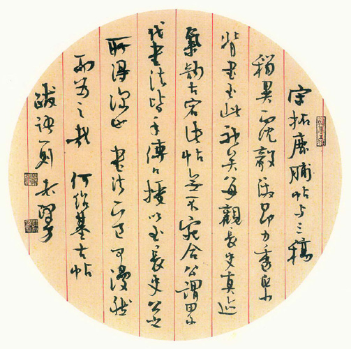 何绍基,1799年生,1873年逝世,道州(今湖南省道县)人。中国清代书法家。字子贞,号东洲居士。何绍基的书法,四体皆工,大小兼能,亦善篆刻。其楷书取颜字结体的宽博而无疏阔之气,还掺入北碑及欧阳询、欧阳通的险峻茂密的特点,追求《张黑女墓志》和《道因碑》的神气,使他的书法不同凡响。小楷又兼取晋法,笔意含蕴,行草书熔篆、隶于一炉,骏发雄强,独具面貌。他的篆书,中锋用笔,并能掺入隶笔,而带行草笔势,亦自成一格。何绍基书法,早年秀润畅达,徘徊于颜真卿、李邕、王羲之和北朝碑刻之间,有一种清刚之气;中年渐趋老成,笔意纵逸超迈,时有颤笔,融厚有味;晚年人书俱老,已臻炉火纯青阶段,是清末碑学大家。